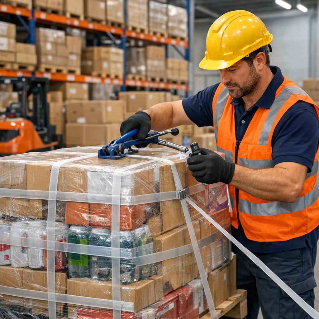 - Wählen Sie das Umreifungsband passend zur Ladungsart und zum Gewicht.
